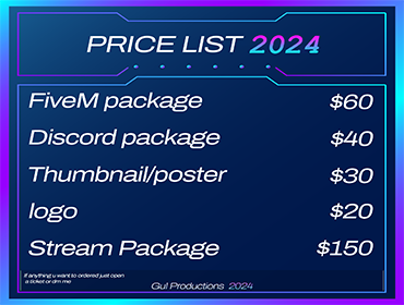 Gul Productions is a graphic designer who makes logos, banners and more. He has a large vast of experience and is always open to a challenge to learn more skills and provide for the fivem community or want a logo made for personal use or business use? then he can also make that happen with his amazing work.